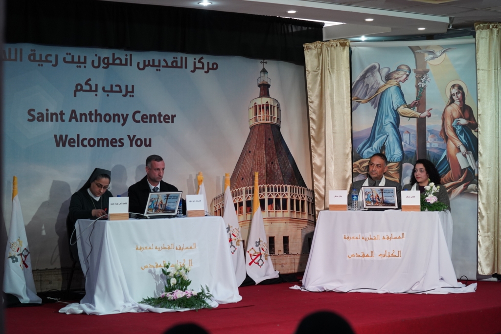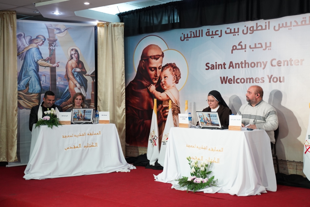 بأجواء احتفالية وبحضور سيادة المطران بولس ماركوتسو، النائب البطريركي اللاتيني العام في القدس وقدس الاب مروان دعدس كاهن رعية اللاتين وعدد كبير من كهنة الرعايا والراهبات الفاضلات والحضور الكريم، احتفل هذا الأسبوع في مركز القديس انطون بانتهاء المرحلة الأولى من المسابقة القطرية الخامسة لمعرفة الكتاب المقدس للكبار والتي تنظمها مؤسسة البشارة بالتعاون مع نادي عائلة البشارة للاتين، تحت رعاية الأبرشيات المسيحية الغربية والشرقية في البلاد، البعثة البابوية ودار الكتاب المقدس الناصرة.