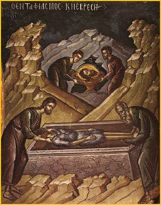بعدما قطع هيرودوس، رئيس الربع، رأس يوحنا المعمدان "تقدم تلاميذه ورفعوا الجسد ودفنوه" (متى 12:14). أما رأسه فأخذته هيروديا على طبق ودفنته في مكان غير لائق بالقرب من قصر هيرودوس.