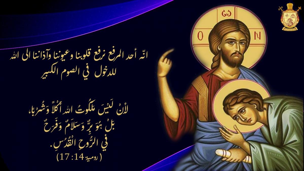 لِتفرَحِ السَّماويَّات، وتبتهِجِ الأرضيَّات. لأنَّ الرَّبَّ صنعَ عِزًا بساعِدِهِ. ووَطِئَ الموتَ بالموت، وصارَ بِكْرَ الأموات. وأنقَذَنا مِن جَوْفِ الجحيم، ومنحَ العالمَ عظيمَ الرَّحمة.